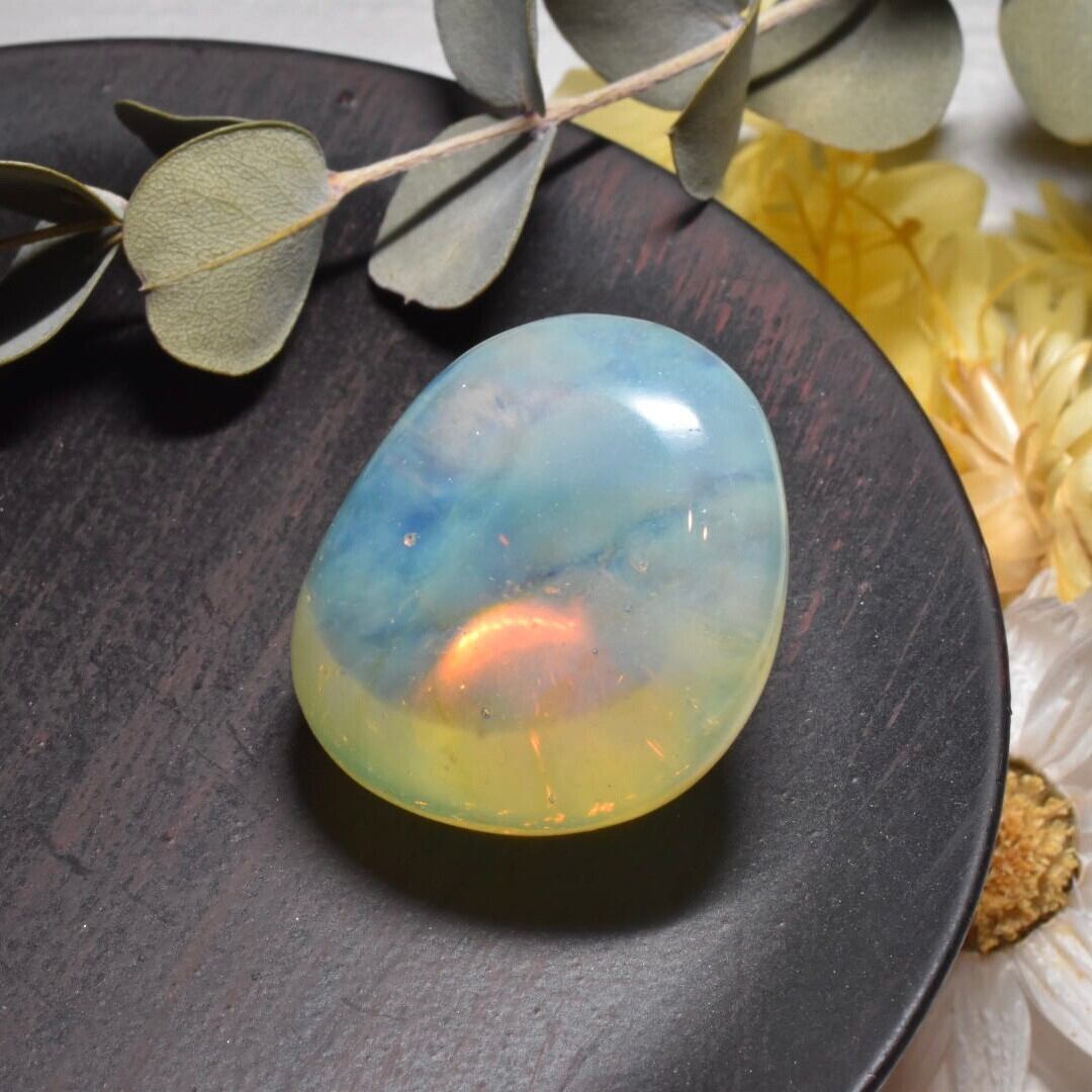 とろりとした優しいカラーのソラリスとイエローハニーのインクリュージョンがあるとても可愛いアンダラのお守り石になりました。