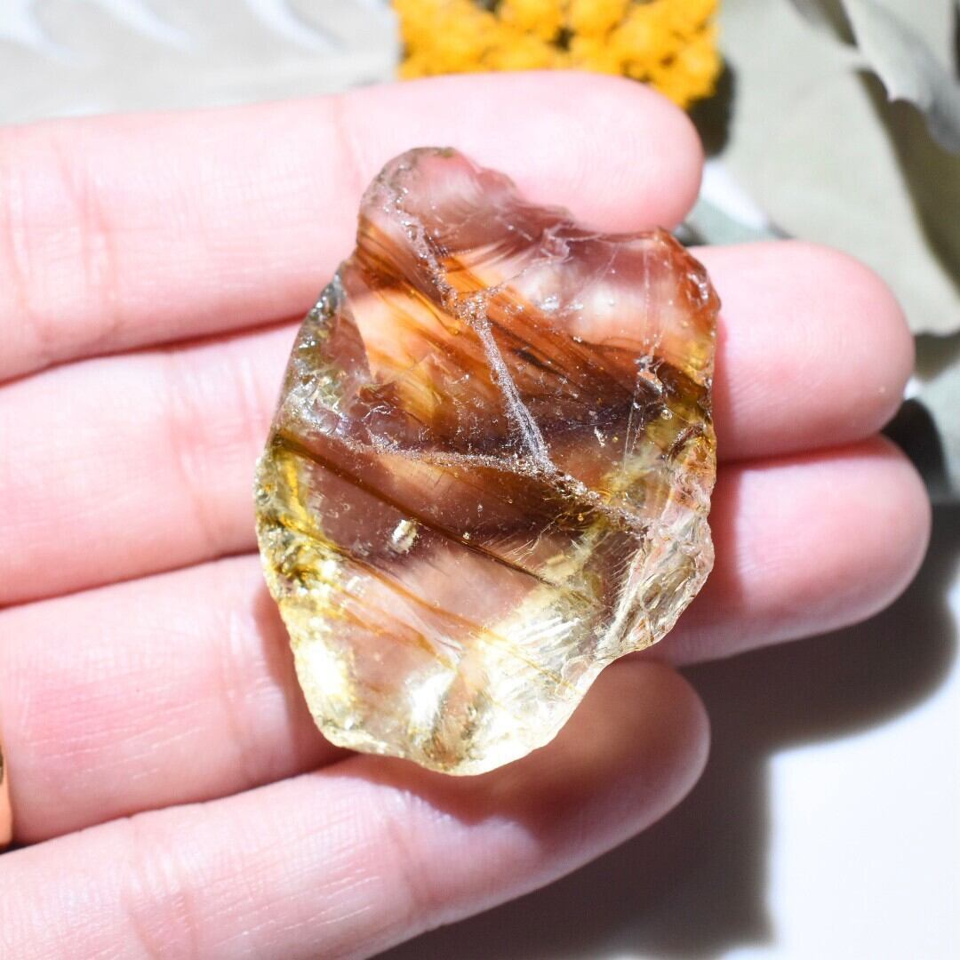 インドネシア産アンダラクリスタル原石 クリア&ブラウンバイカラー A