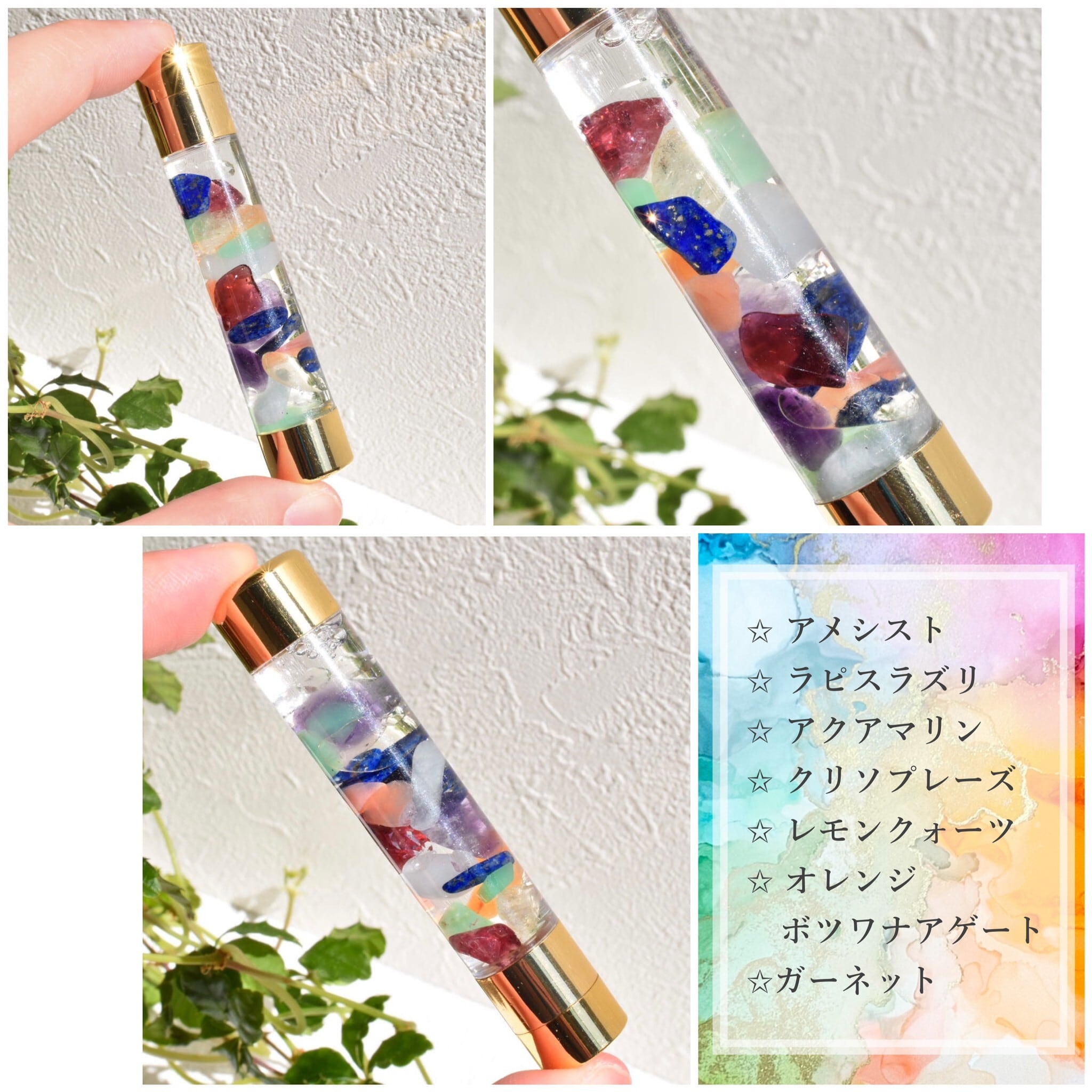 アメシスト、ラピスラズリ、アクアマリン、クリソプレーズ、レモンクォーツ、オレンジボツワナアゲート、ガーネット