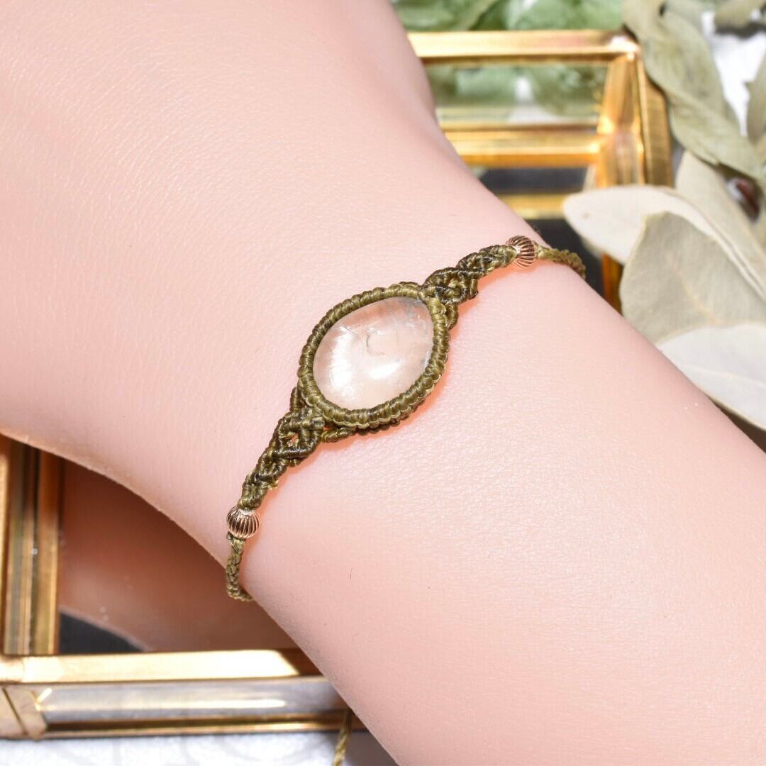 マクラメシンプルブレスレット ヒデナイト(グリーンクンツァイト)レインボー入り 14KGF使用 MB14