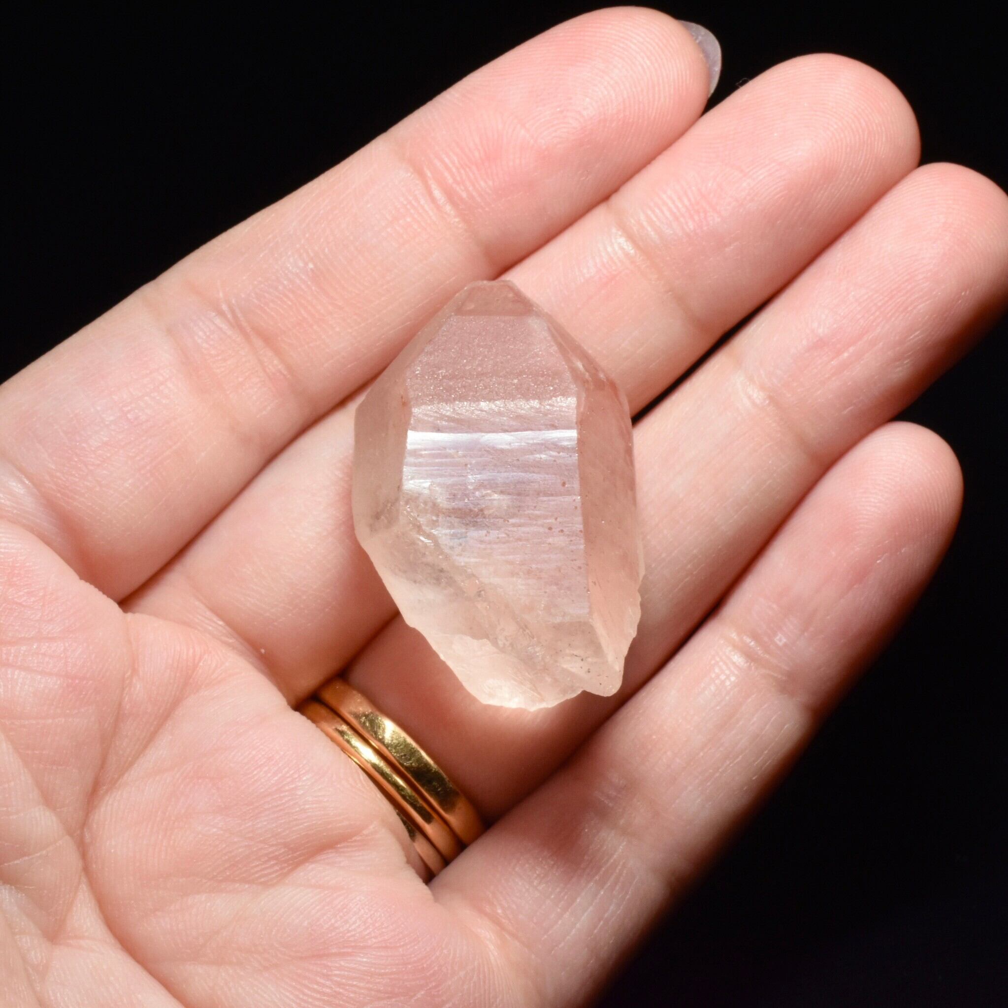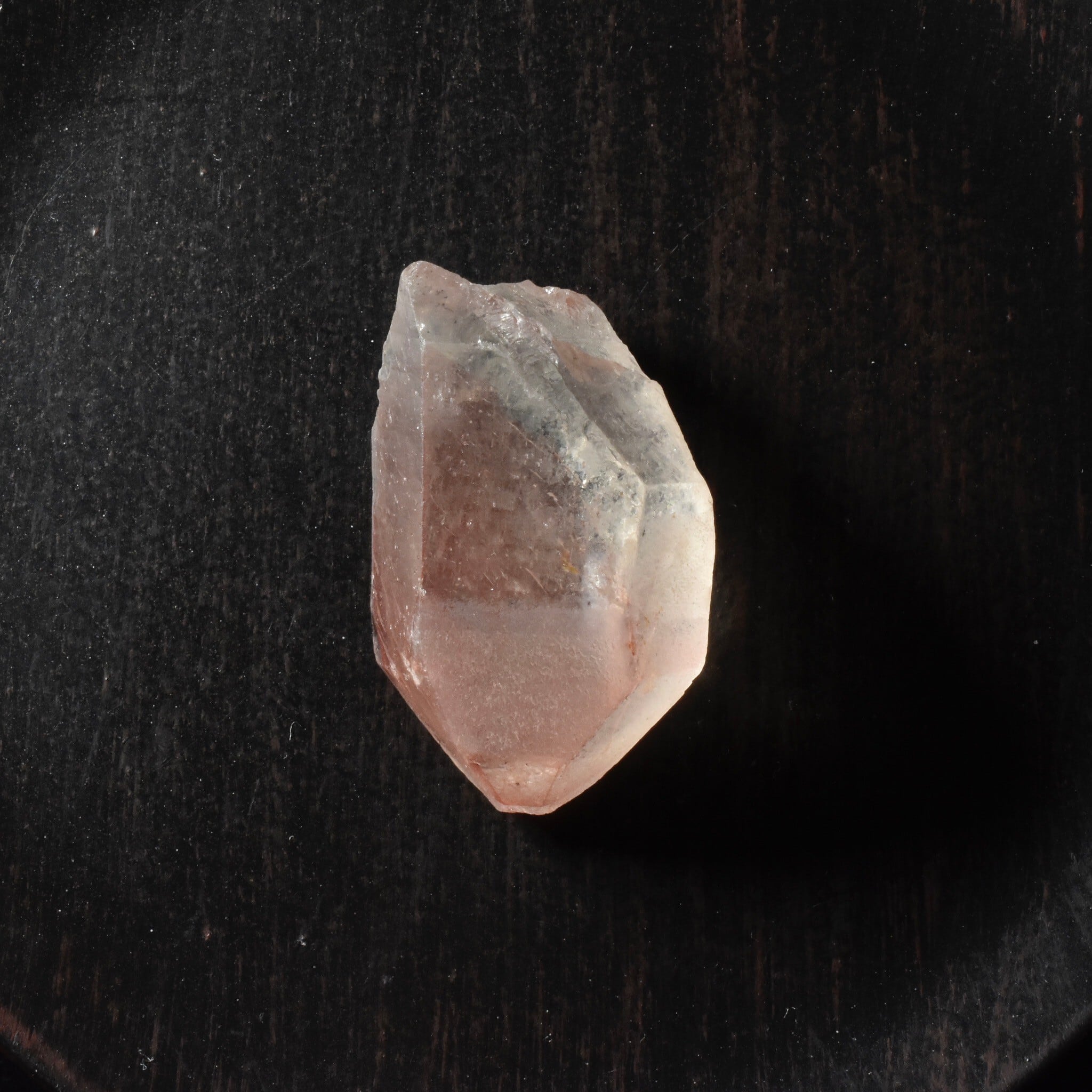 透明の水晶が優しいピンクカラーに発色します。