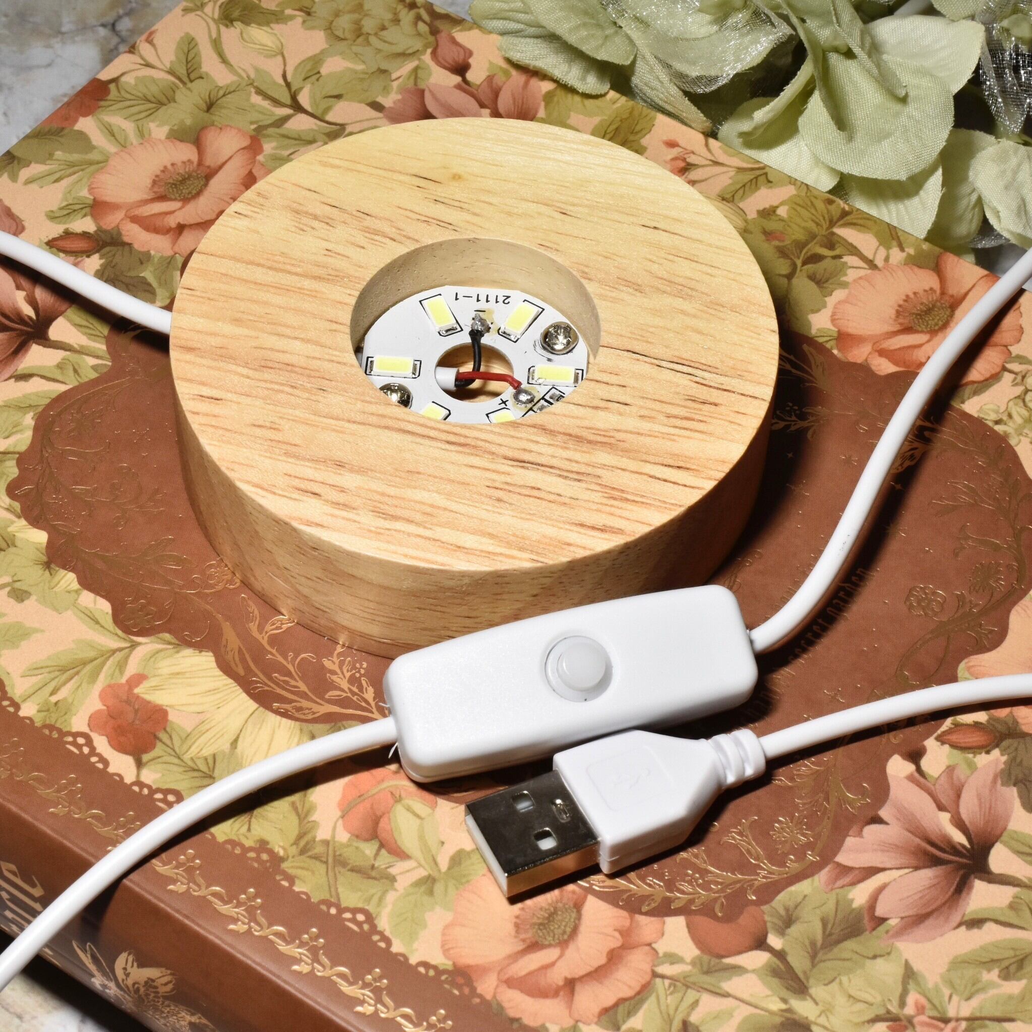 《 LEDライト木製台座 》 直径約8cm × 高さ約2cm USB(TYPE-A)タイプ